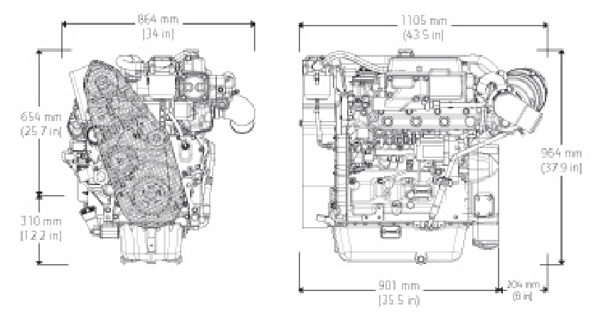 | Cilindrata - L (cu in) | 4.48 (273) | Altezza, centro dell'albero motore alla parte superiore - mm (in) | 653 (25.7) | |||