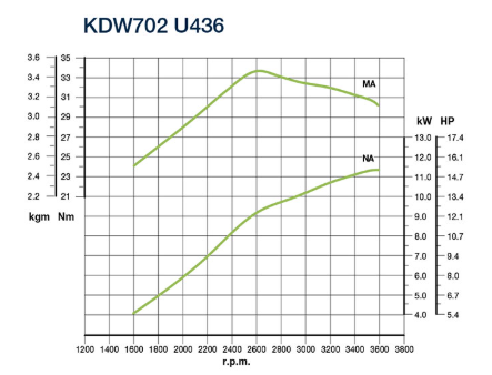 Il motore diesel Kohler KDW 702 è un potente e compatto motore a 4 tempi con 2 cilindri in linea, raffreddato a liquido. Con una cilindrata di 686 cm³ e una potenza di 11,7 kW, offre prestazioni affidabili e consumi contenuti.